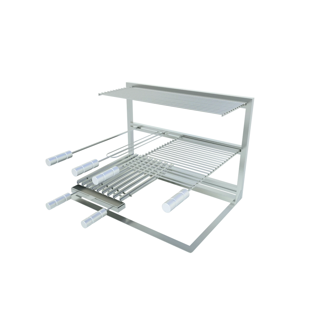 - 3 níveis de espetos e grelhas suspensos (parte da estrutura)